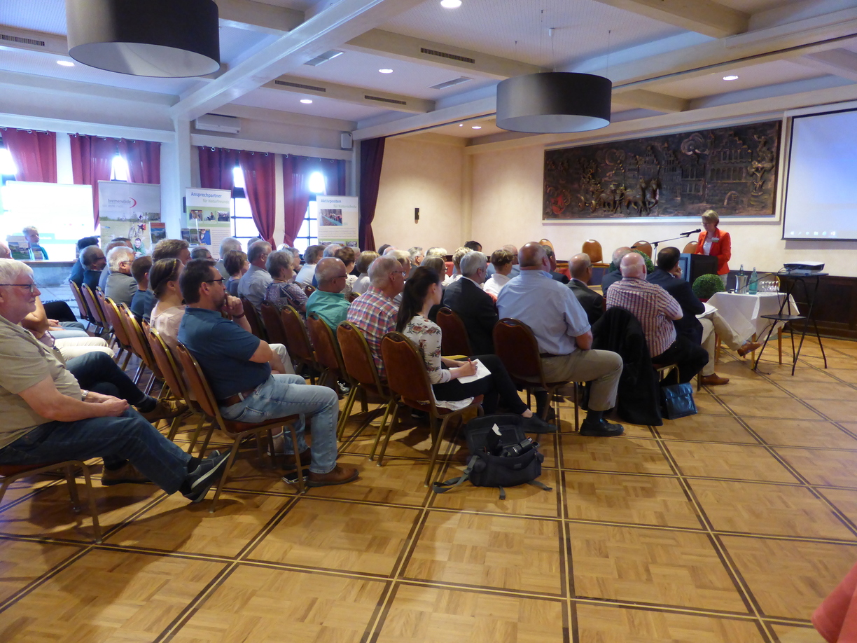Am Samstag, den 22.06.2019, fand der ILE-Regionstag im Hotel Daub in Bremervörde statt. Bürger, Behördenvertreter, Akteure aus der Region und Kooperationspartner kamen zusammen, um eine erste Zwischenbilanz zu ziehen und sich über aktuelle und geplante ILE-Projekte zu informieren. Mit von der Partie waren auch der CDU-Bundestagsabgeordnete Oliver Grundmann, CDU-Landtagsabgeordnete Helmut Dammann-Tamke, Monika Scherf, Leiterin des Amtes für regionale Landesentwicklung sowie Landrat Hermann Luttmann, welche die Veranstaltung mit Grußworten bereicherten. Die Veranstaltung wurde rege besucht, sodass die verschiedenen ILE-Projekte (u.a. Bürgerhaus Elm, Torfstichpfad Mulsum) in Kurzvorträgen einer breiten Masse präsentiert werden konnten. Auch die Podiumsdiskussionen am Nachmittag zu den Themen Klimaschutz und demografischer Wandel mit Experten wurden mit großem Interesse der Veranstaltungsteilnehmer verfolgt. Daneben rundeten Infostände verschiedener Wirtschafts- und Sozialpartner der Region den Tag ab. Weitere Informationen zum ILE-Regionstag können Sie dem Zeitungsartikel aus der Bremervörder Zeitung vom 25.06.2019 entnehmen.